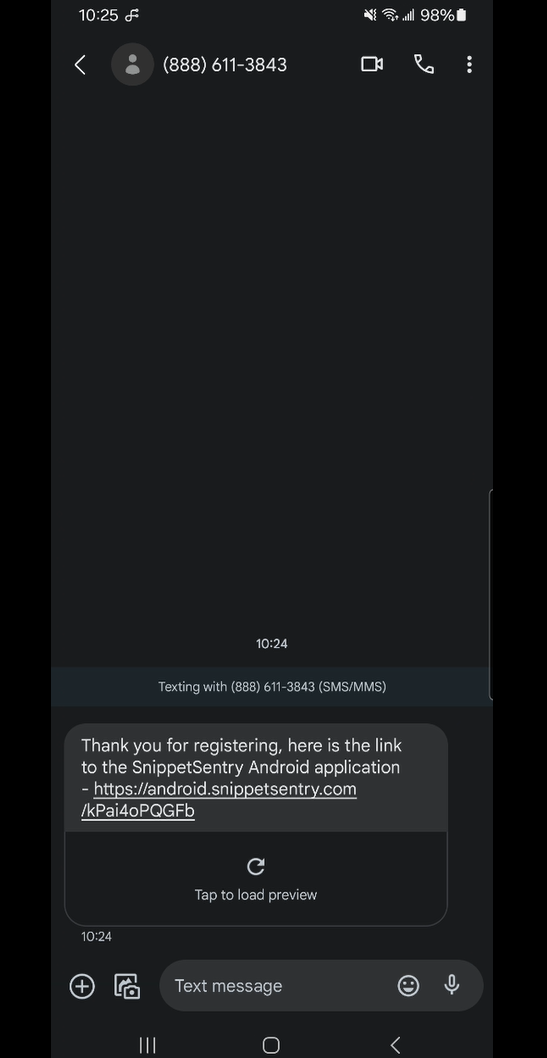 - You will receive this Initial Message from SnippetSentry after connecting: