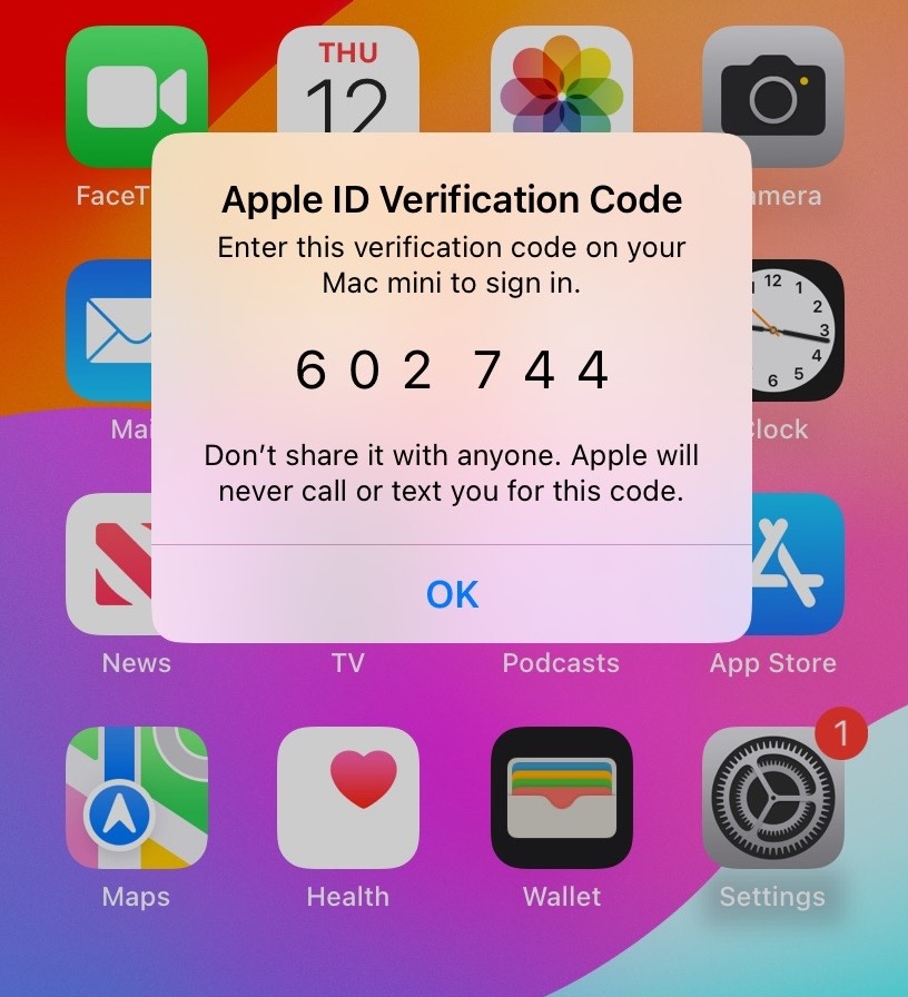 - If your organization is set up for Two-Factor authentication, you may receive the verification code on your personal device, or whatever device your recovery settings are set up for with Apple.